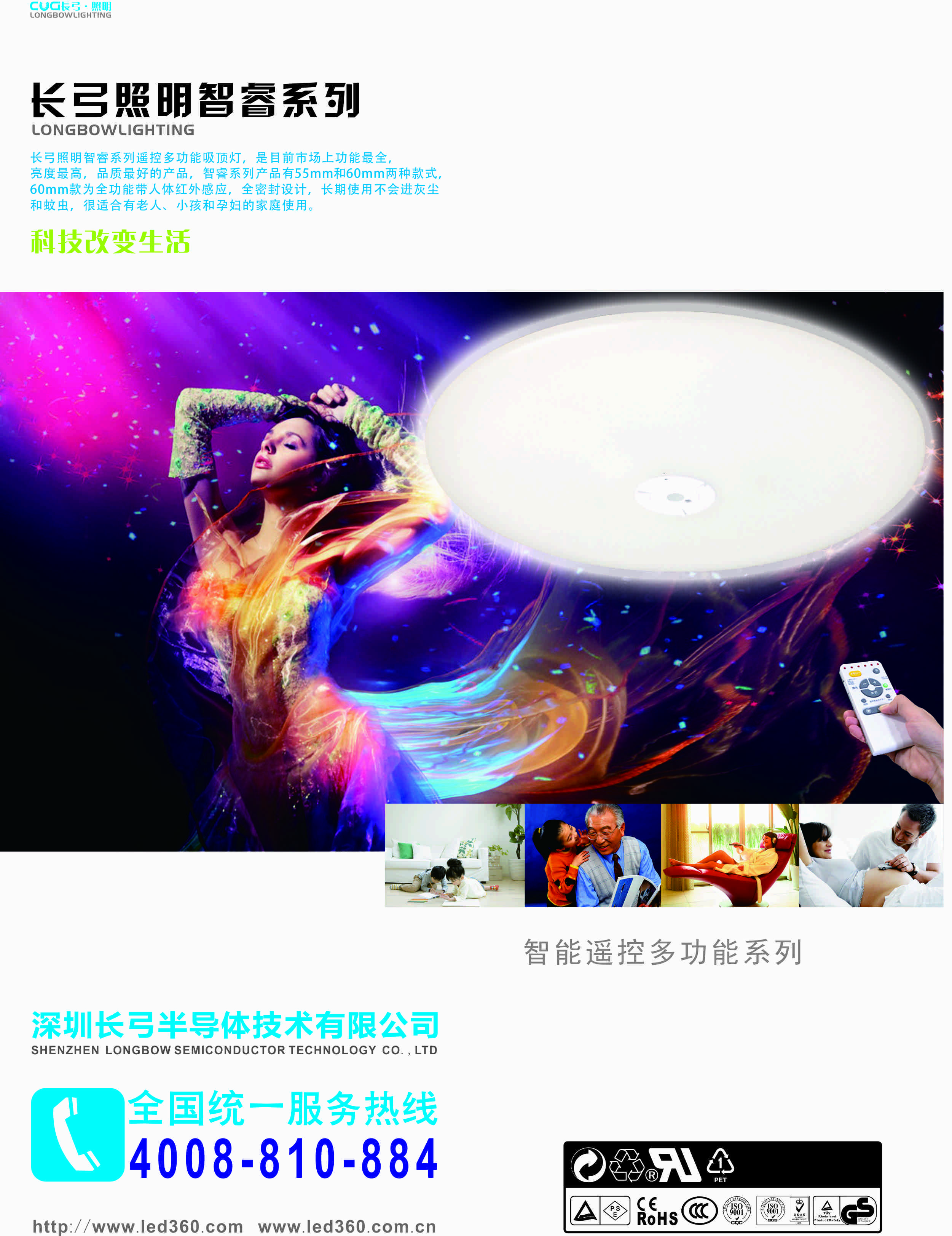长弓照明智睿系列遥控多功能吸顶灯宣传资料